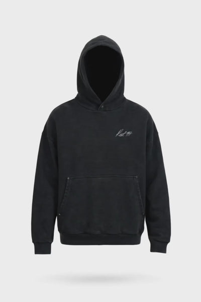 Erkek Oversized Washed Embroidered Hoodie - Siyah